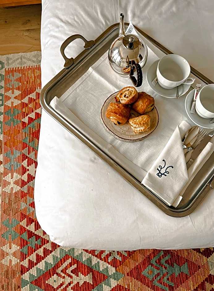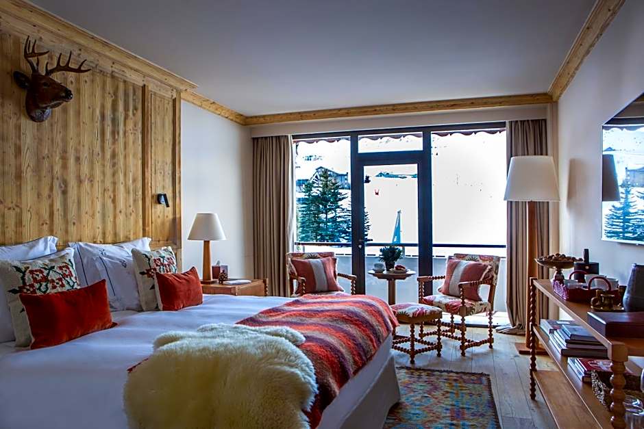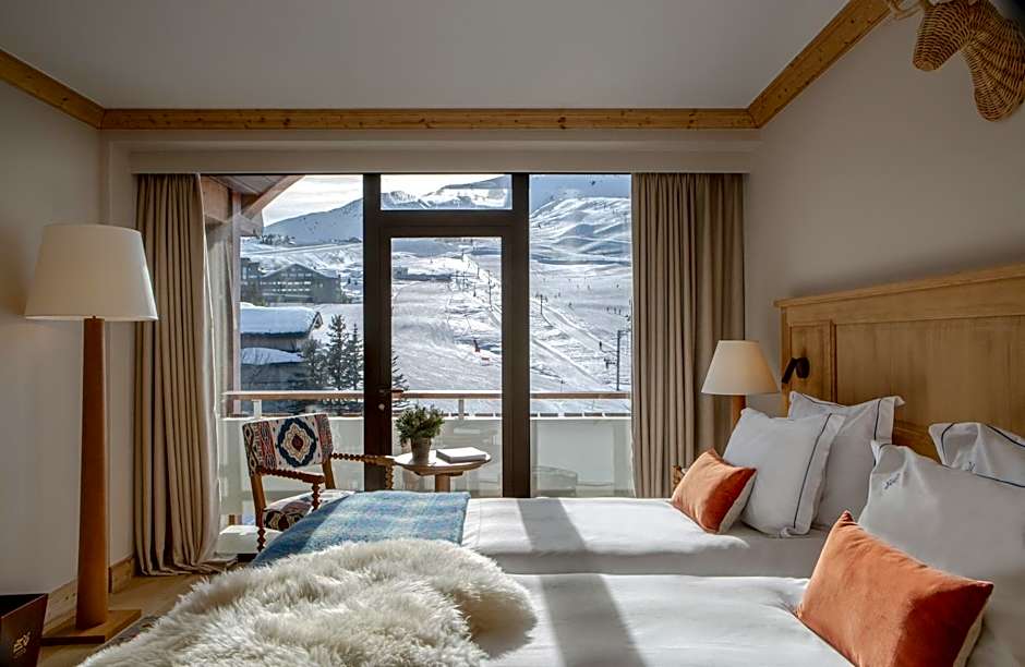 This room is decorated in a mountain style and has views of the ski slopes. The private bathroom has a bath, slippers and a hairdryer.